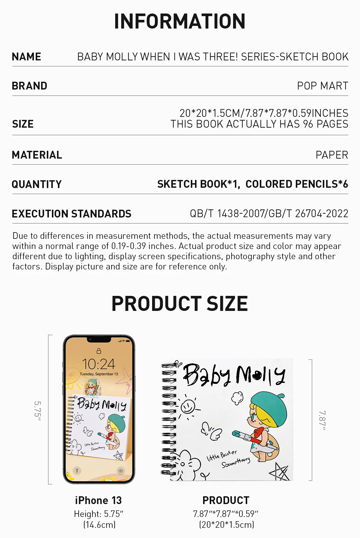 *Due to differences in measurement methods, the actual measurements may vary within a normal range of 0.19- 0.39 inches. Actual product size and color may appear different due to lighting, display screen specifications, photography style and other factors. Display picture and size are for reference only.
