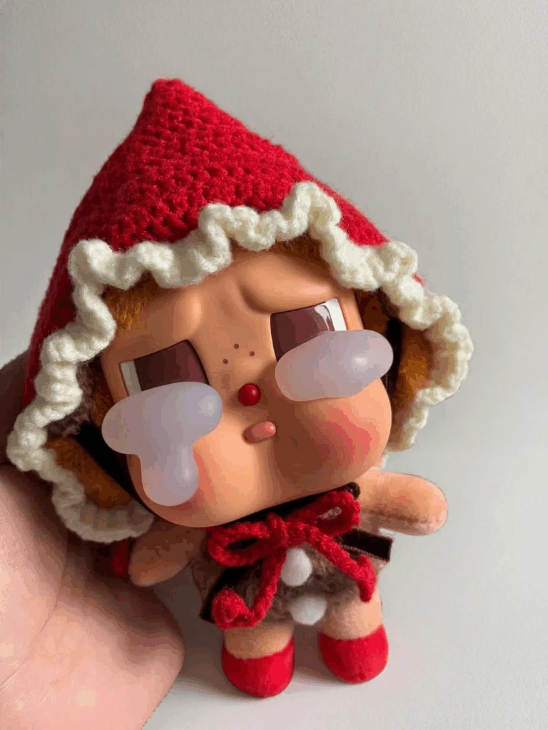 Each costume is lovingly handcrafted with careful attention to detail. The crochet hood is made with premium yarn, the scalloped white trim adds a soft decorative border, and the custom teardrop elements create a unique emotional character that stands out in any collection.