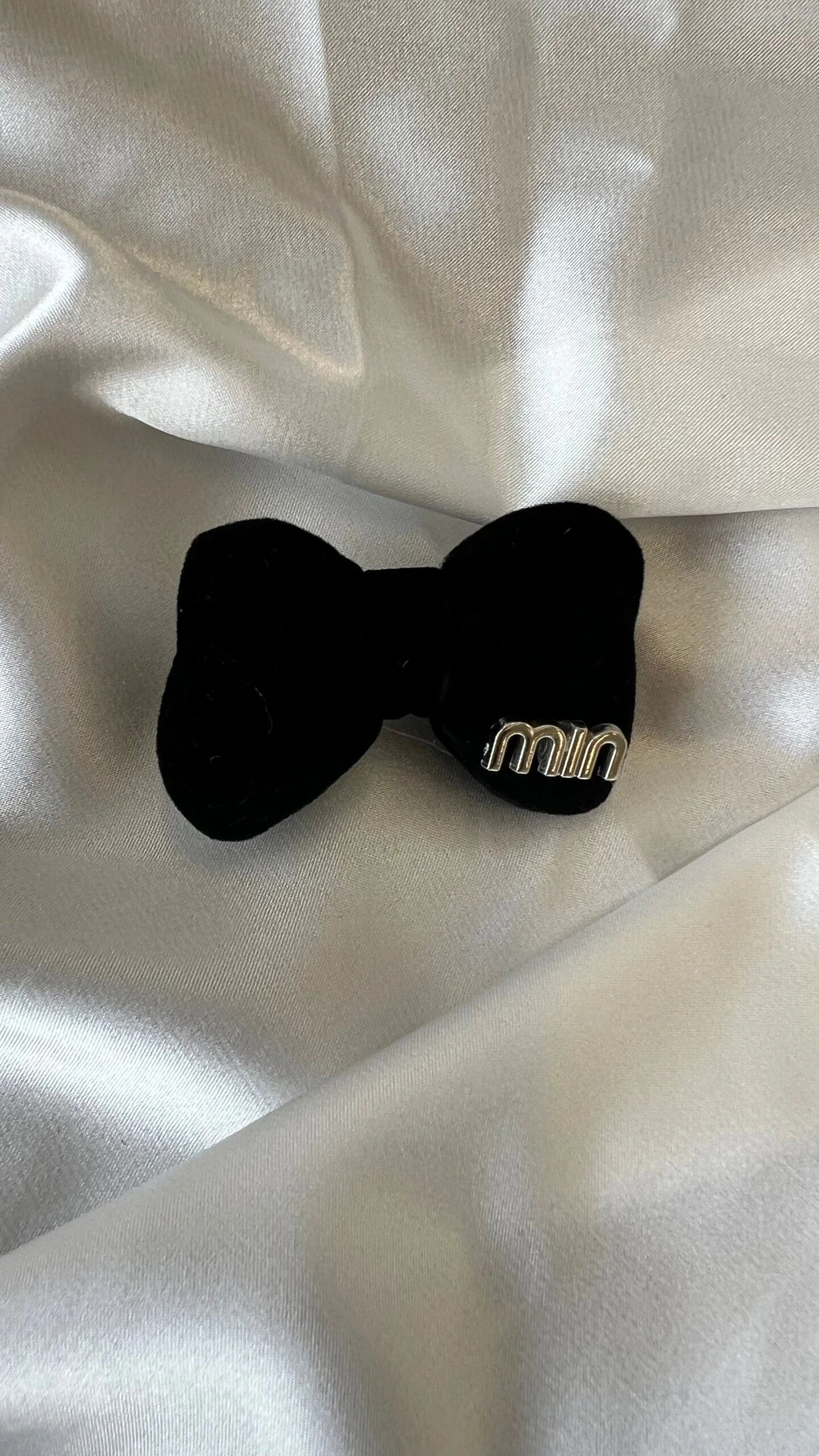 • Black bow headband with gold embellishment