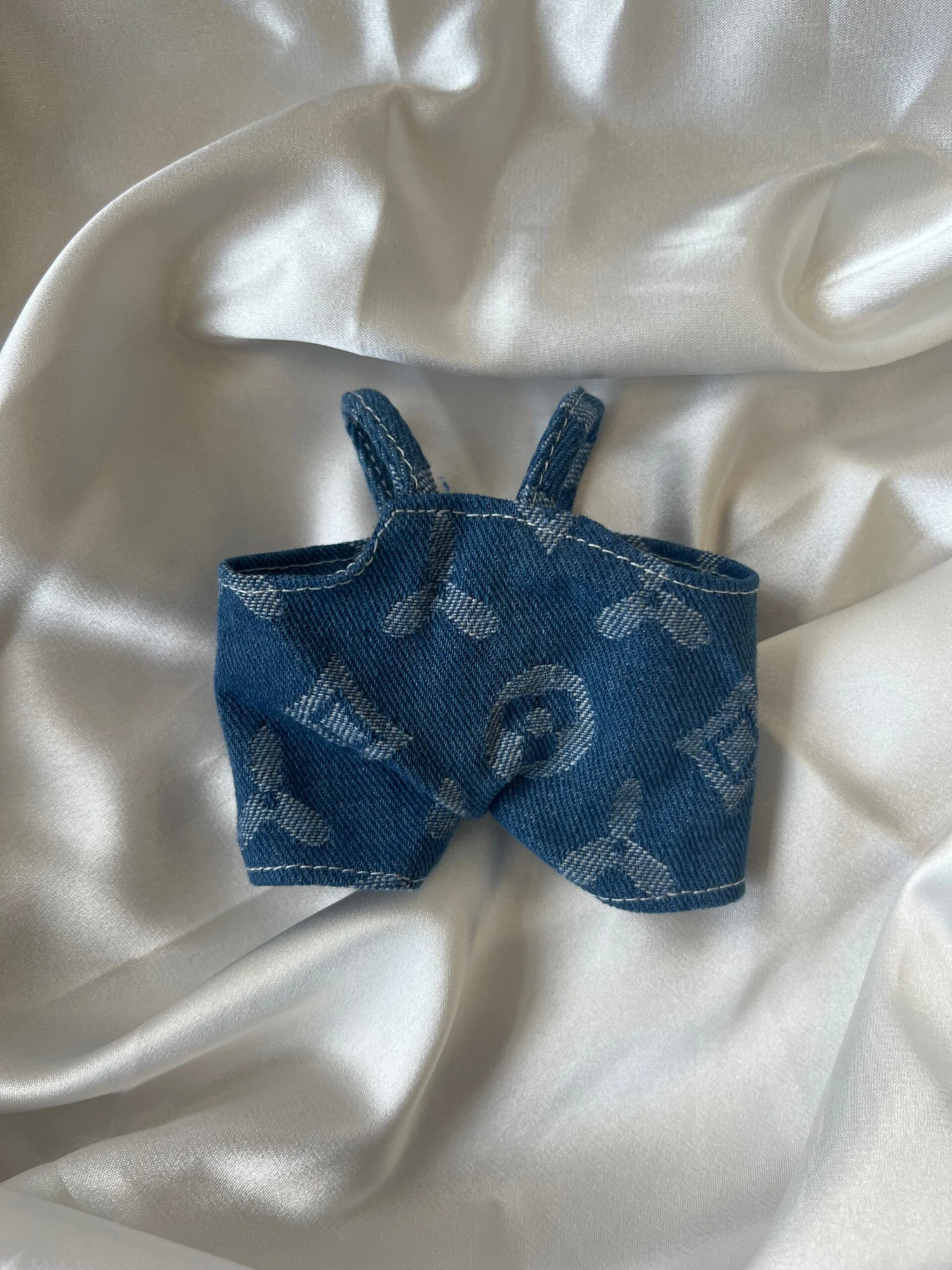 Give your Labubu a designer-inspired look with this blue monogram denim set — a standout piece in Labubu clothes and collector-worthy Labubu outfits.