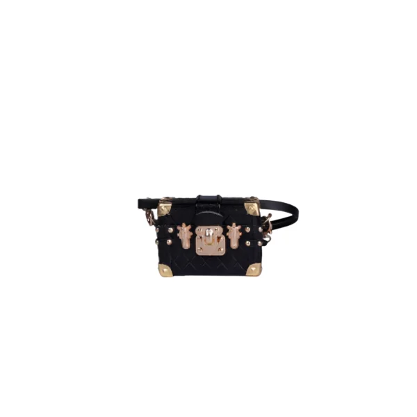 Labubu L.V. Inspired Mini Trunk Crossbody Bag – Black With Gold Accents