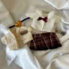 Labubu School Preppy Set – Cream Knit Cardigan & Plaid Skirt With Bow (17cm)