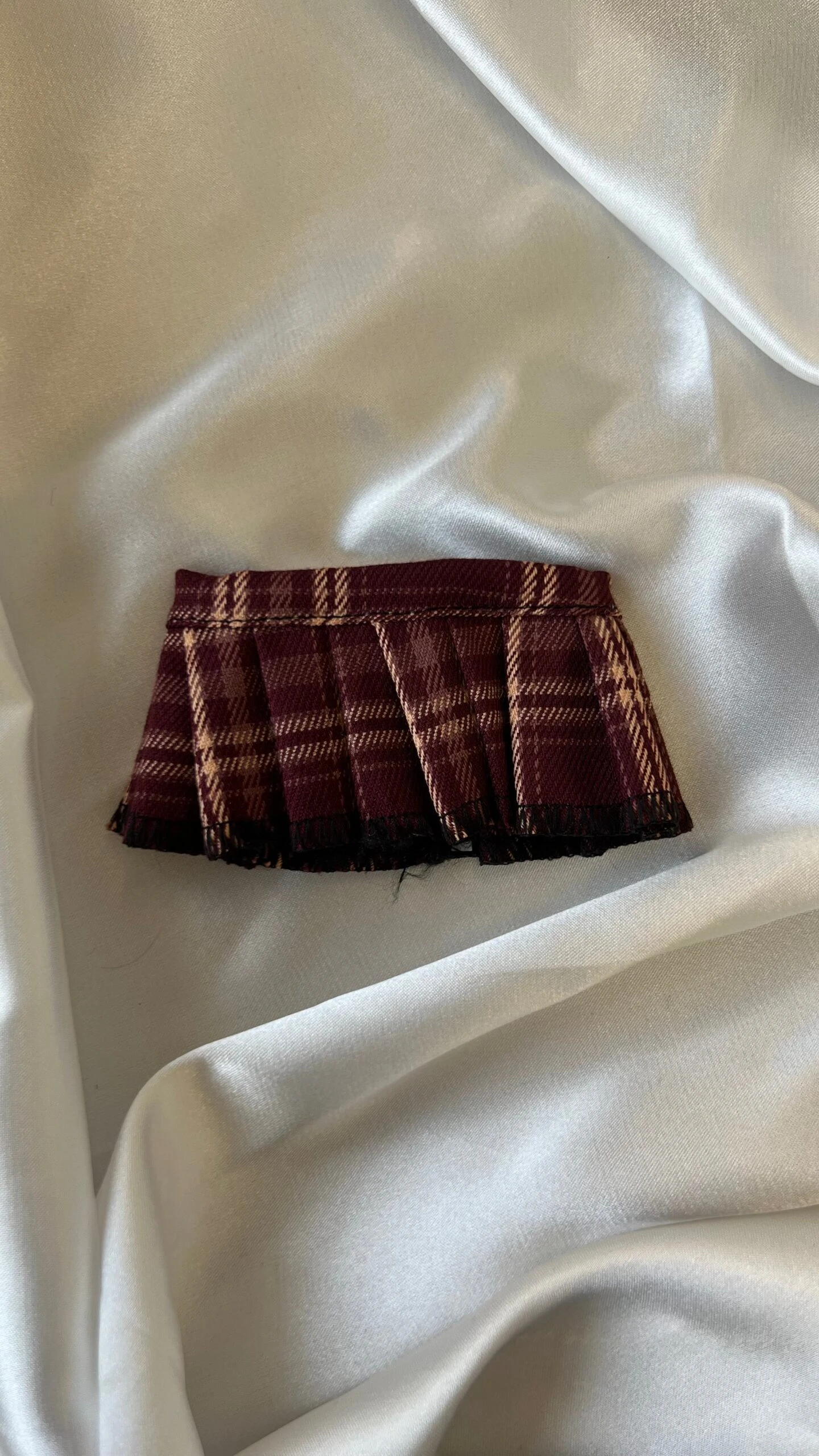 Transform your plush friend into a charming scholar with our handcrafted Labubu School Preppy Set! Each outfit features a cozy cream knitted cardigan with golden heart brooch, burgundy bow accent, and matching plaid pleated skirt. The set includes an adorable bow-topped ear warmer and ‘smile’ charm detail for extra sweetness.