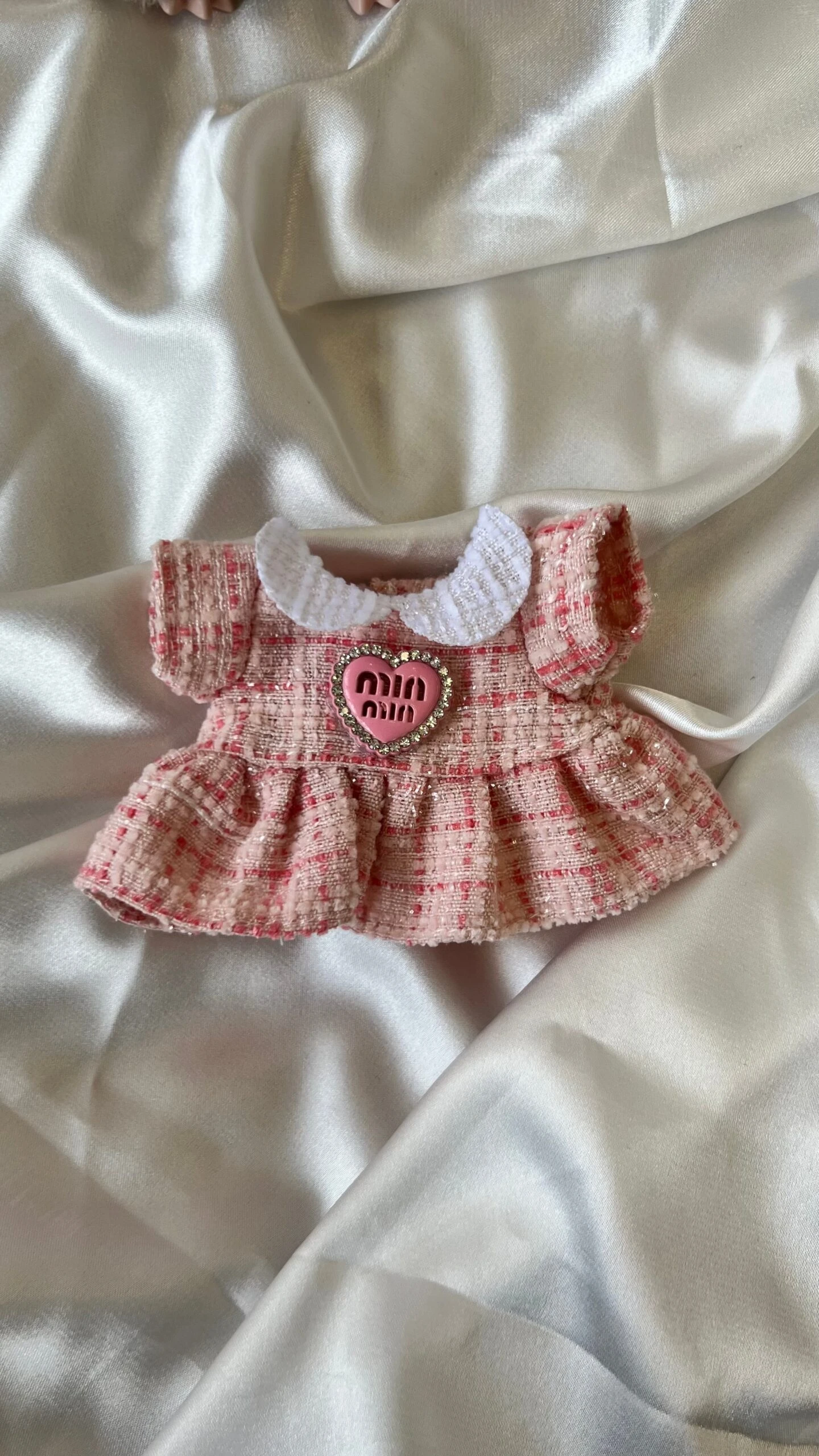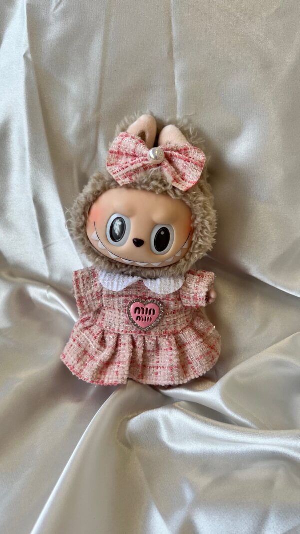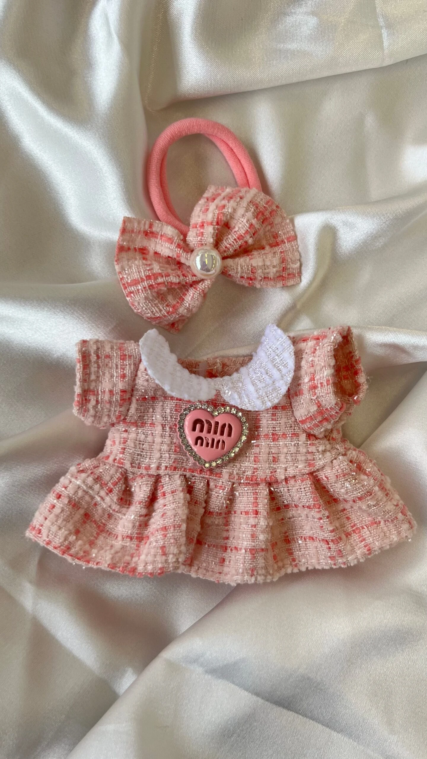 Dress your Labubu in sweet style with this pink tweed dress set.