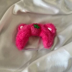 Labubu Berry Bear Set – Pink Fluffy Onesie & Strawberry Hood (17cm)