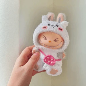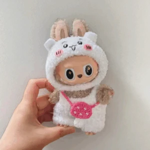 Labubu Chiikawa Set – White Character Costume With Pink Purse (17cm)