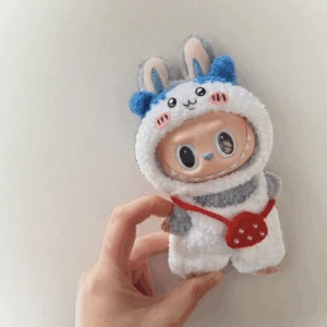 Labubu Hachiware Set – White & Blue Character Costume With Red Purse