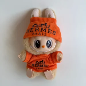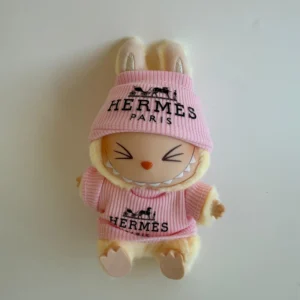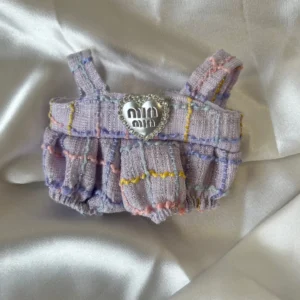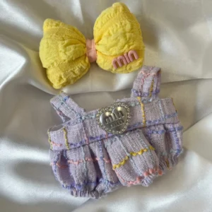 Labubu Lavender Tweed Set – Purple Overalls & Yellow Bow Accessory (17cm)