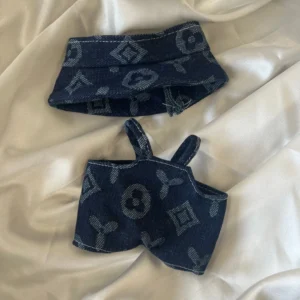 Labubu L.V. Inspired Blue Monogram Denim Set – Overalls & Bucket Hat