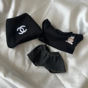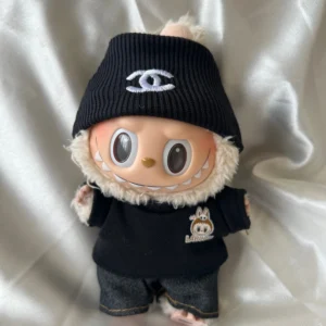Labubu Streetwear Fashion Set – Black Designer Beanie & Denim Outfit (17cm)