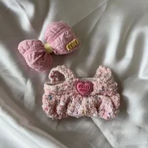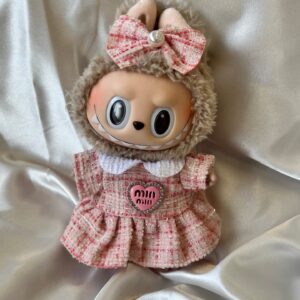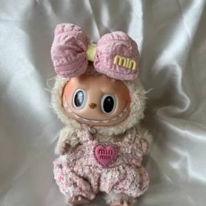 Labubu Sweet Tweed Set – Pink Overalls & Matching Bow Accessory (17cm)