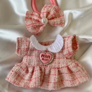 Labubu Sweet Tweed Dress Set – Pink With Matching Hair Bow
